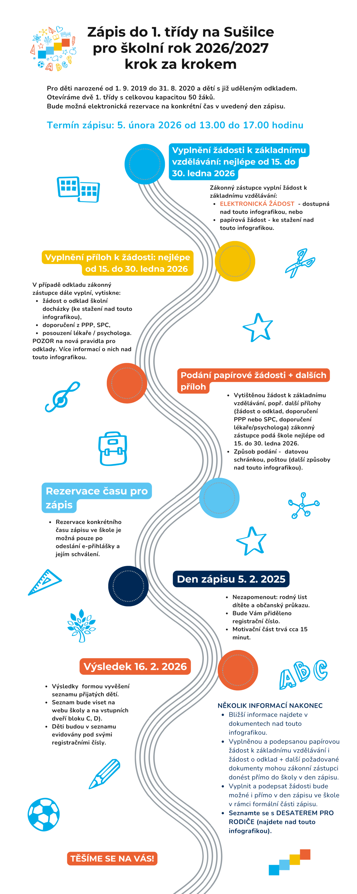níže na uvedených odkazech a infografice naleznete veškeré informace týkající se zápisu do 1. tříd. Neváhejte se na nás obrátit.
