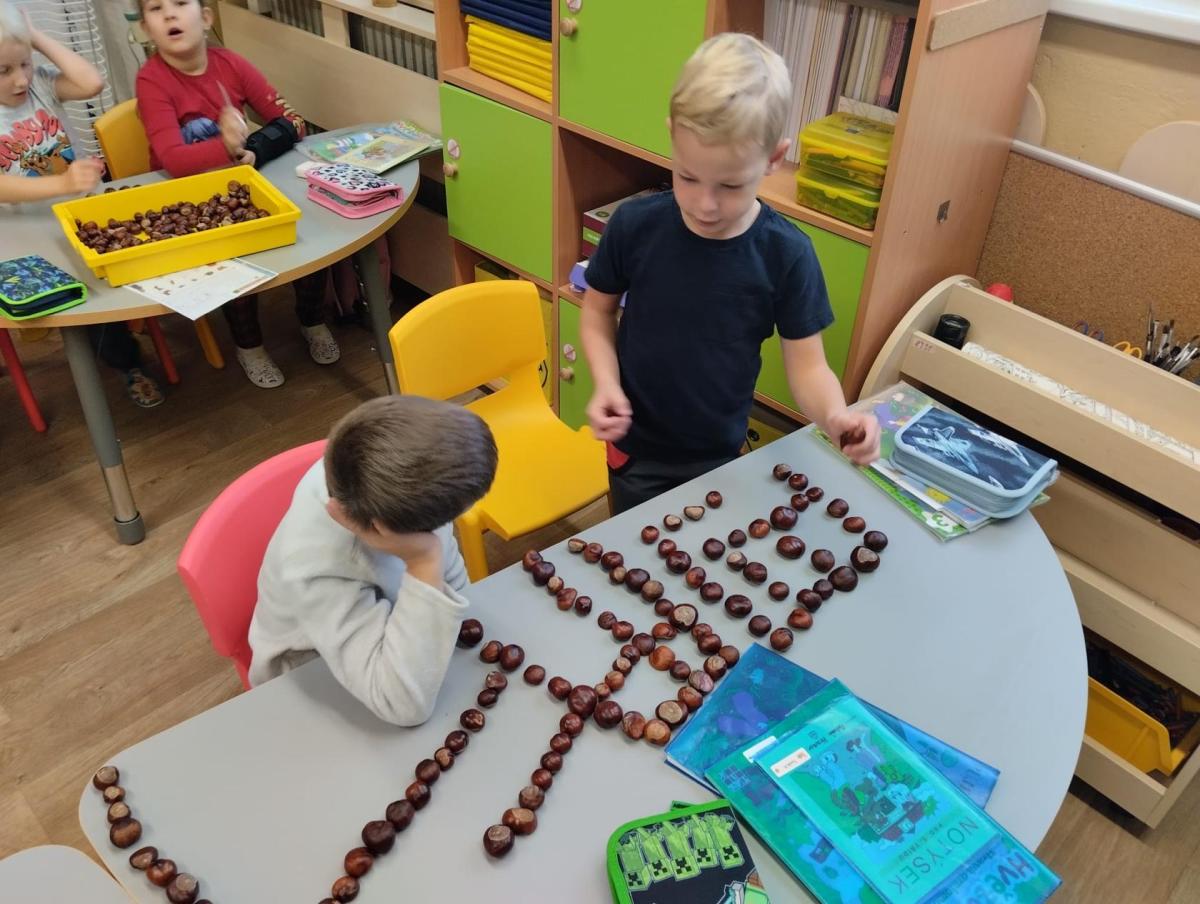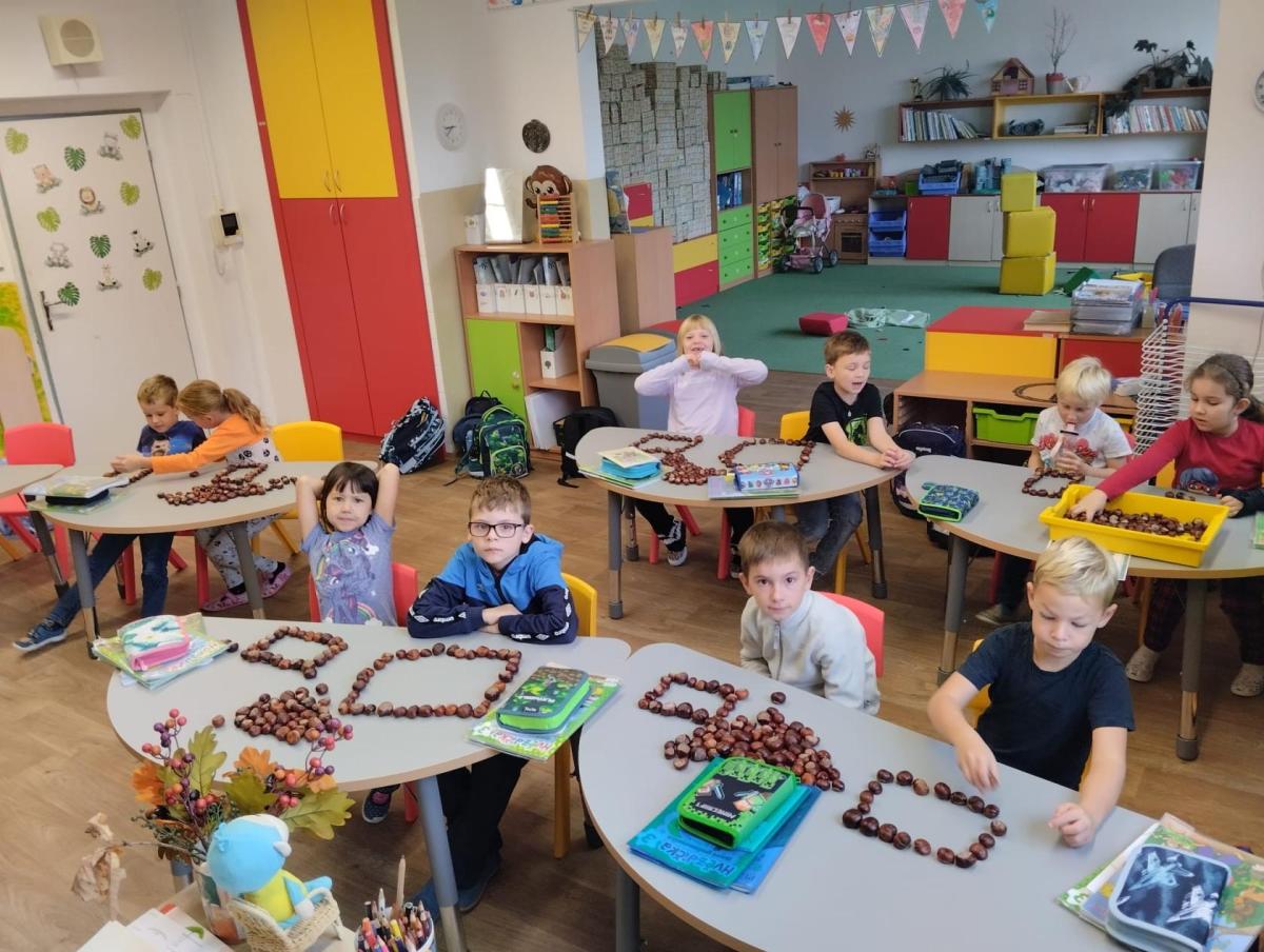S pomocí dětí z přípravky a jejich rodičů se nám ve třídě sešlo opravdu velké množství kaštanů.