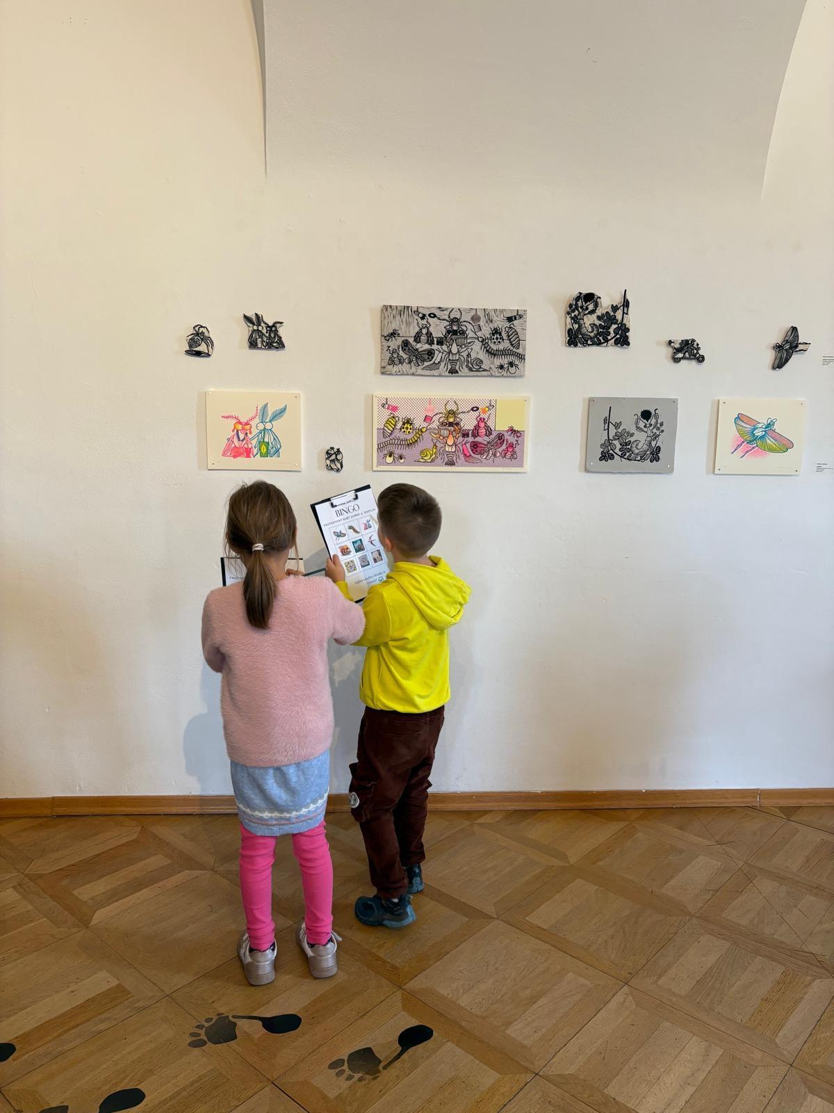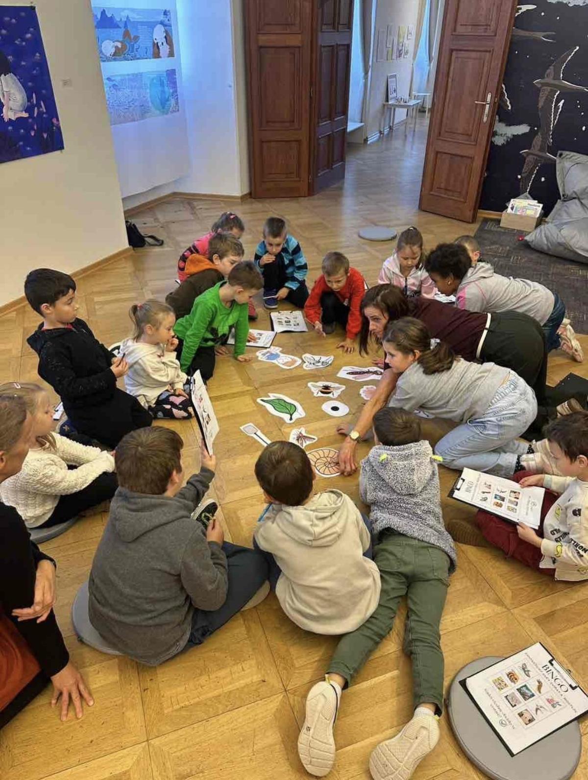 Na začátku si zahráli hru Bingo – najdi všechny obrázky na výstavě, která je zavedla do světa přírody.