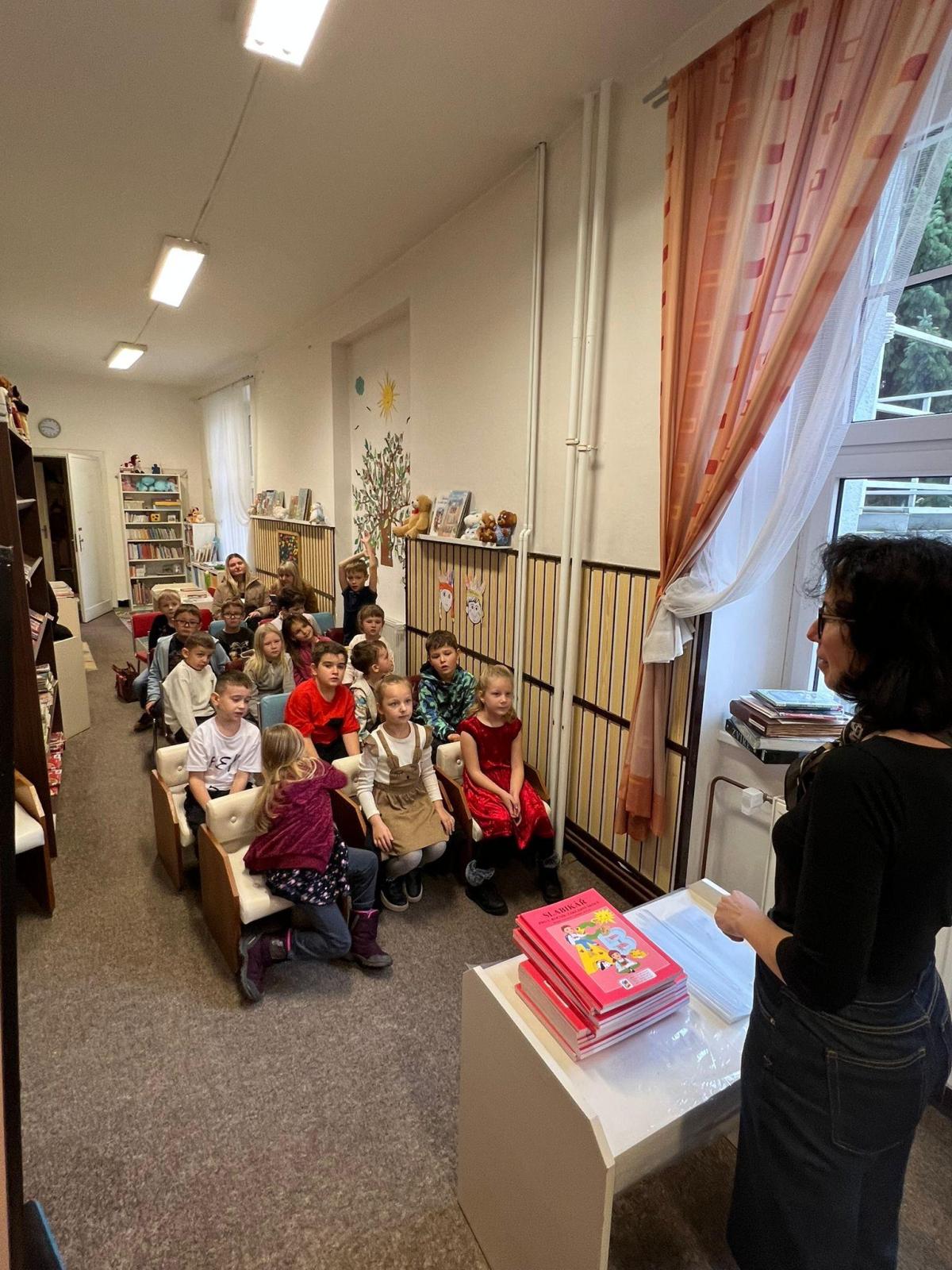 V týdnu od 10.-14.11. všechny třídy prvňáčků postupně navštívily knihovnu, kde se dozvěděly, jak funguje knihovna, jak se mají, resp. jak se nemají chovat ke knížkám.