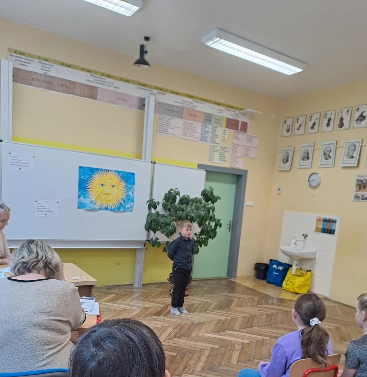 Ve čtvrtek 12. března se pět našich žáků z 1. stupně účastnilo regionální recitační soutěže v Lysicích „O lysické sluníčko“. V soutěži školu reprezentovali žáci Marek Tlamka (1. A), Michael Dürer (1. B), Julie Klímová a Tereza Halačová (3. A) a Teodor Dostál (5. A). Výkony našich soutěžících byly na vysoké úrovni, přesto jsme žádné medailové umístění nezískali. Všichni si však vyzkoušeli vystupování na veřejnosti před porotou, ostatními dětmi a zvládli svoji trému.