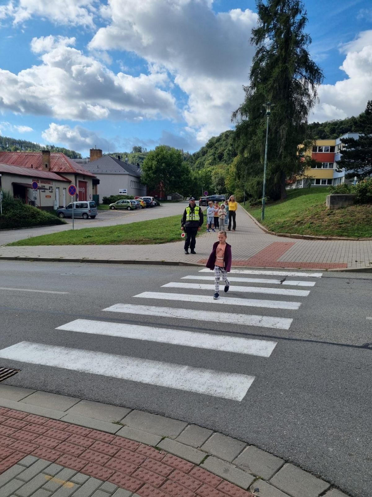 Žáci si nejprve zopakovali teoretické znalosti a poté si vyzkoušeli přecházení přes přechody v plném provozu.