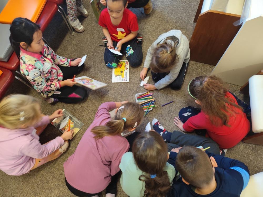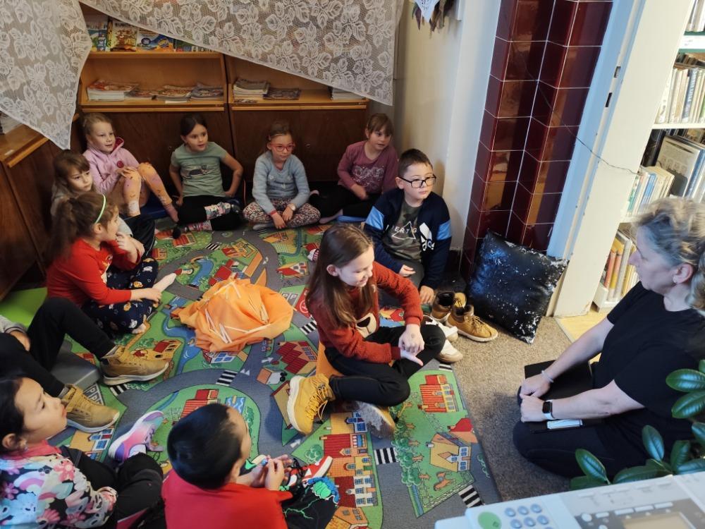 Knihovnice nám přečetla krátký příběh, dávala otázky a na závěr jsme si vyrobili papírová